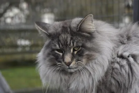 Nous sommes tombés sous le charme de ce grand chat robuste qui est doux et câlin, véritable chat-chien par son comportement pot-de-colle à toujours vouloir être où nous sommes, voir ce que nous faisons, et même nous suivre en promenade.